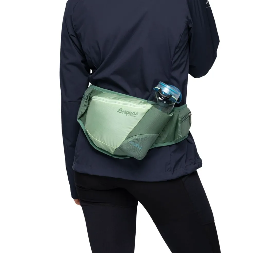 Fleksible hoftelommer for mobiltelefon og flaskeholder